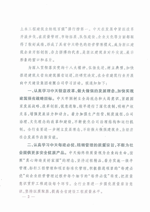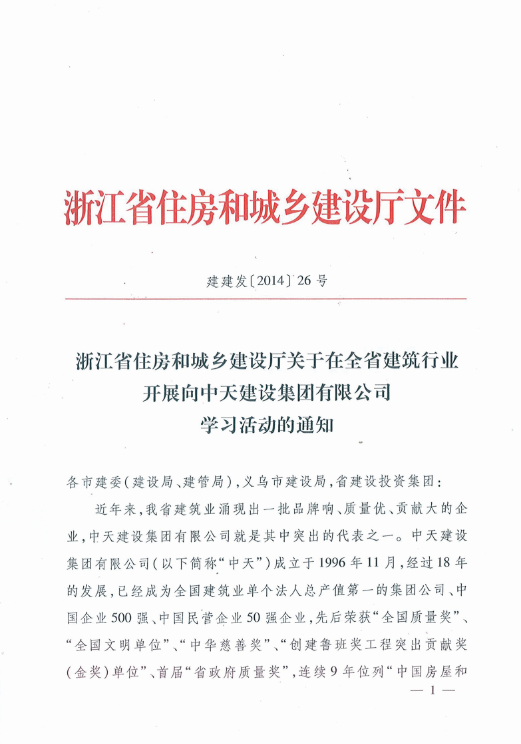 《浙江省住房和城乡建设厅关于在全省建筑行业开展向w66旗舰厅建设集团有限公司学习活动的通知》